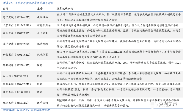 在二级市场,已有数十家公司采用收购、新建、托管等手段切入康复医疗服务领域,部分公司属于跨界而来。