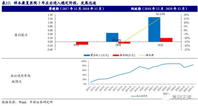 开业后至拿到医保资质需要0.5-1年,至扭亏为盈需要1-1.5年的爬坡期,然后将进入稳定发展期,盈利能力持续提升,有望达到 20%左右净利率。