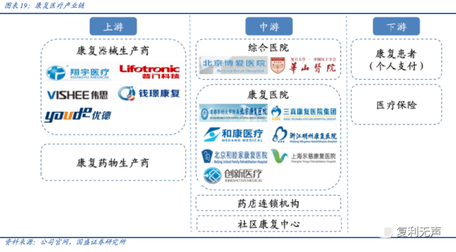 中游是康复医疗机构,以及部分出售康复药物及器械的零售药店等机构;