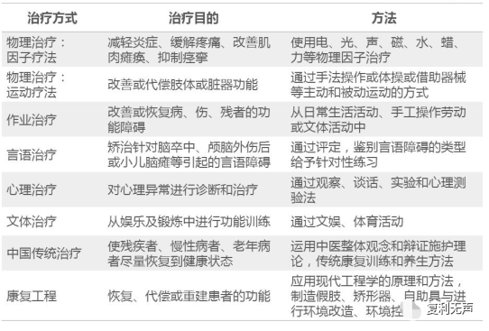 3、康复医学覆盖病种人群广泛,治疗手段多样